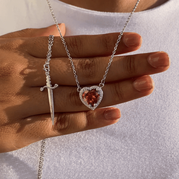 Collar de espada de corazón: este collar de espada de corazón para parejas adopta un diseño único, inspirado en la fusión de amor y valentía. El corazón representa el amor, el romance y la ternura, mientras que la espada simboliza la fuerza, la protección y el coraje, que es un símbolo del amor eterno.
